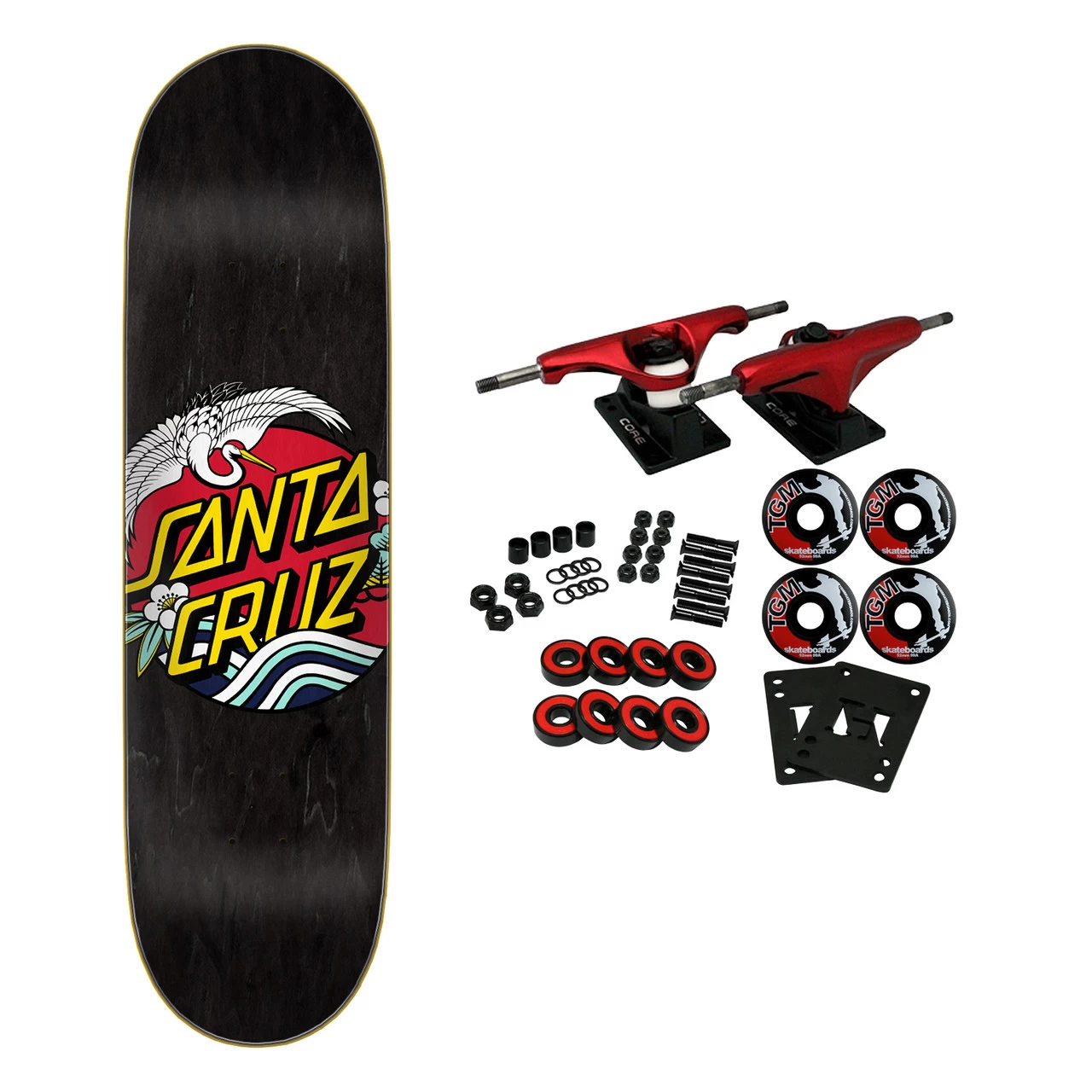 Santa Cruz Skateboards Crane Dot LG deck with spot gloss graphic on 7 ply northern hardwood deck pressed using specially designed crosslinked glue, creating a responsive and durable deck at an affordable price. Art by Mako makoyamaki. Measures 8.5″ x 32.2″. Comes with Core trucks, 52mm TGM logo wheels, Amp abec 5 bearings, Black Diamond Griptape, risers, and hardware. Core trucks are light weight and feature heavy duty aluminum with grade 8 steel kingpins and axles, as well as USA made bushings and pivot cups. 52mm 99A are the perfect wheels for both street and park skating. Like the name states, Amp bearings are stimulants for your wheels! Light synthetic oil, Delrin Crowns, and Rubber Serviceable Shields are a few of the things that makes these bearings one of the best Abec 5 rated bearings on the market. Arrives un-assembled which allows for customization and a feeling of accomplishment. Skaters love building their boards! Easy to assemble!