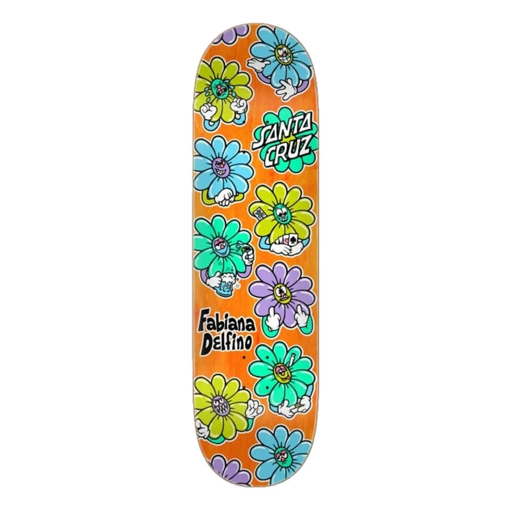 Santa Cruz Skateboards Fabiana Delfino Wildflower Pro deck featuring spot gloss graphic print on 7-ply North American Maple pressed individually using epoxy making a strong, responsive deck with long-lasting pop and consistent concave and kick.