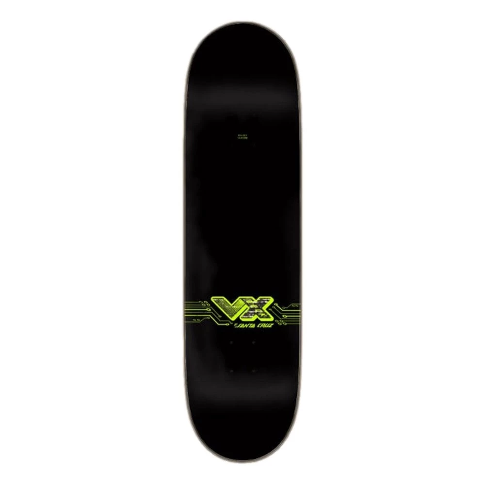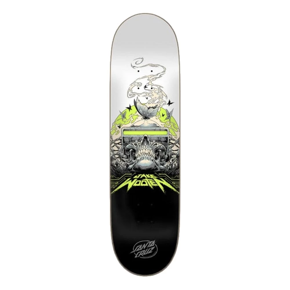 Santa Cruz Skateboards Jake Wooten Cyber Pro VX deck featuring art by Luke Preece @lukepreeceart with spot gloss graphic. VX decks are thinner, stronger, and have more pop than standard 7-ply decks featuring 5 plies of North American Maple and 2 layers of Quad X technology.
