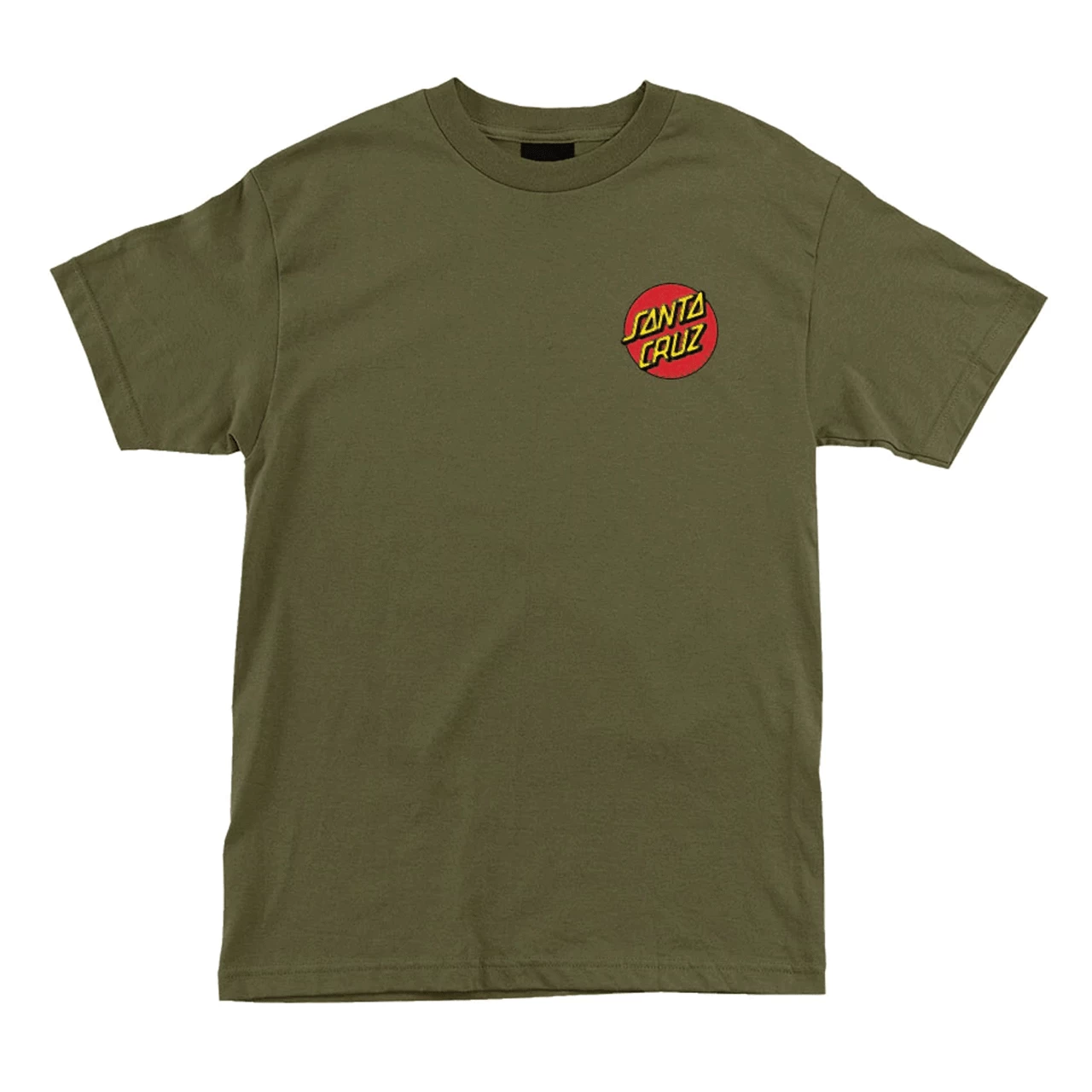 Roll up and stand out in the latest t-shirts and apparel from Santa Cruz Skateboards. The Classic Dot Chest men’s short-sleeve t-shirt features small front and large back Santa Cruz Classic Dot logo prints in soft hand ink. Santa Cruz has been manufacturing the best skateboards and apparel since 1973. Innovative skateboards and artwork from the beginning ’til the end.