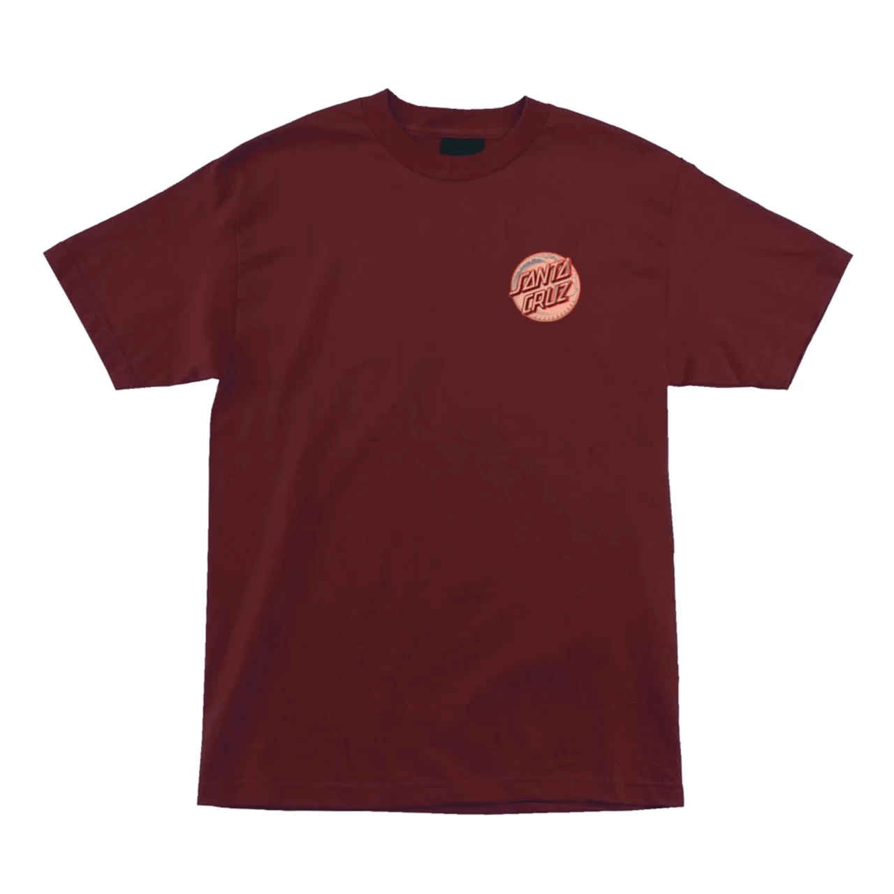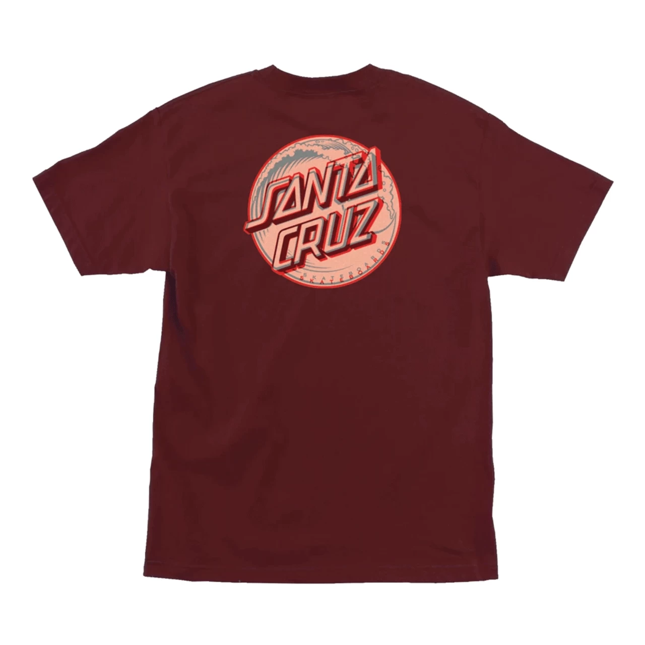 Regular fit short sleeve 6 oz. jersey t-shirt with small front and large back Santa Cruz Decoder Dot logo prints; print graphics change from Santa Cruz Dot to Santa Cruz Wave Dot using included decoder lens hangtag.