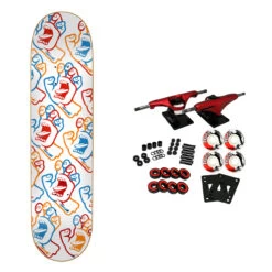 Santa Cruz Skateboards Screaming Hand Fusion deck with spot gloss graphic on 7 ply northern hardwood deck pressed using specially designed crosslinked glue, creating a responsive and durable deck at an affordable price. Measures 7.75″ x 31.4″ with a 14″ wheelbase. Comes with Core trucks, 52mm TGM logo wheels, Amp abec 5 bearings, Black Diamond Griptape, risers, and hardware. Core trucks are light weight and feature heavy duty aluminum with grade 8 steel kingpins and axles, as well as USA made bushings and pivot cups. 52mm 99A are the perfect wheels for both street and park skating. Like the name states, Amp bearings are stimulants for your wheels! Light synthetic oil, Delrin Crowns, and Rubber Serviceable Shields are a few of the things that makes these bearings one of the best Abec 5 rated bearings on the market. Arrives un-assembled which allows for customization and a feeling of accomplishment. Skaters love building their boards! Easy to assemble!