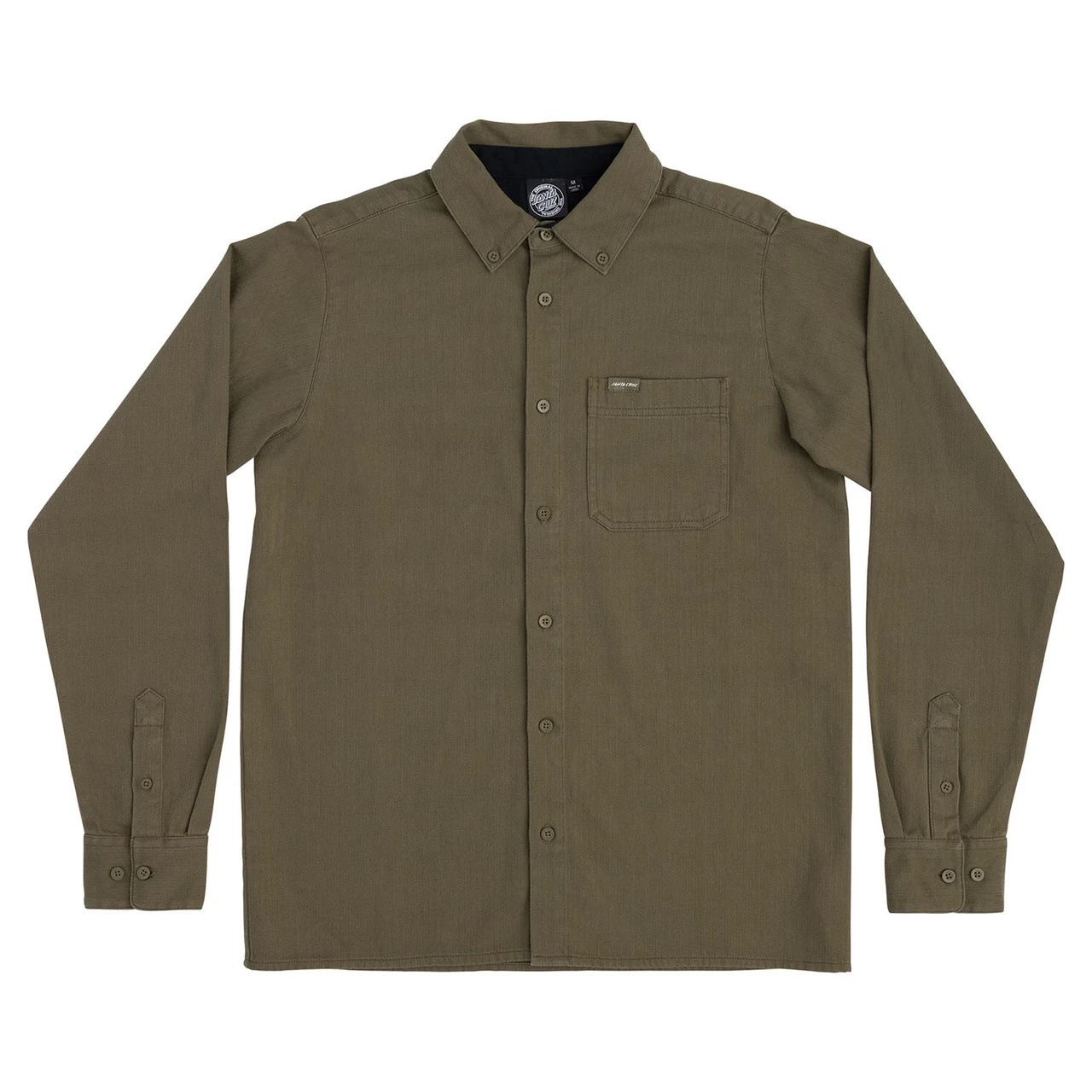 Roll up and stand out in the latest apparel and accessories from Santa Cruz Skateboards. The new Santa Cruz Bowman regular fit herringbone fabric button down top features contrast interior yoke and patch on chest pocket with woven logo loop label. Santa Cruz has been manufacturing iconic skateboards and apparel since 1973. Innovative skateboards and artwork from the beginning ’til the end.