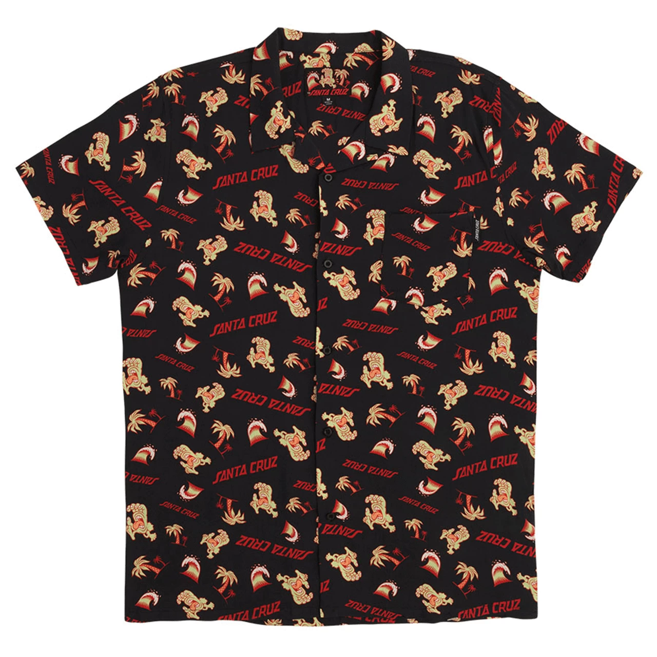 Roll up and stand out in the latest t-shirts and apparel from Santa Cruz Skateboards. The new Beach Bum Hand men’s short-sleeve regular fit button front party shirt features all over Beach Bum Hand print and Beach Bum Hand custom woven label. Thomas Fernandez artwork based on the original from Jim Phillips. Santa Cruz has been manufacturing the best skateboards and apparel since 1973. Innovative skateboards and artwork from the beginning ’til the end.