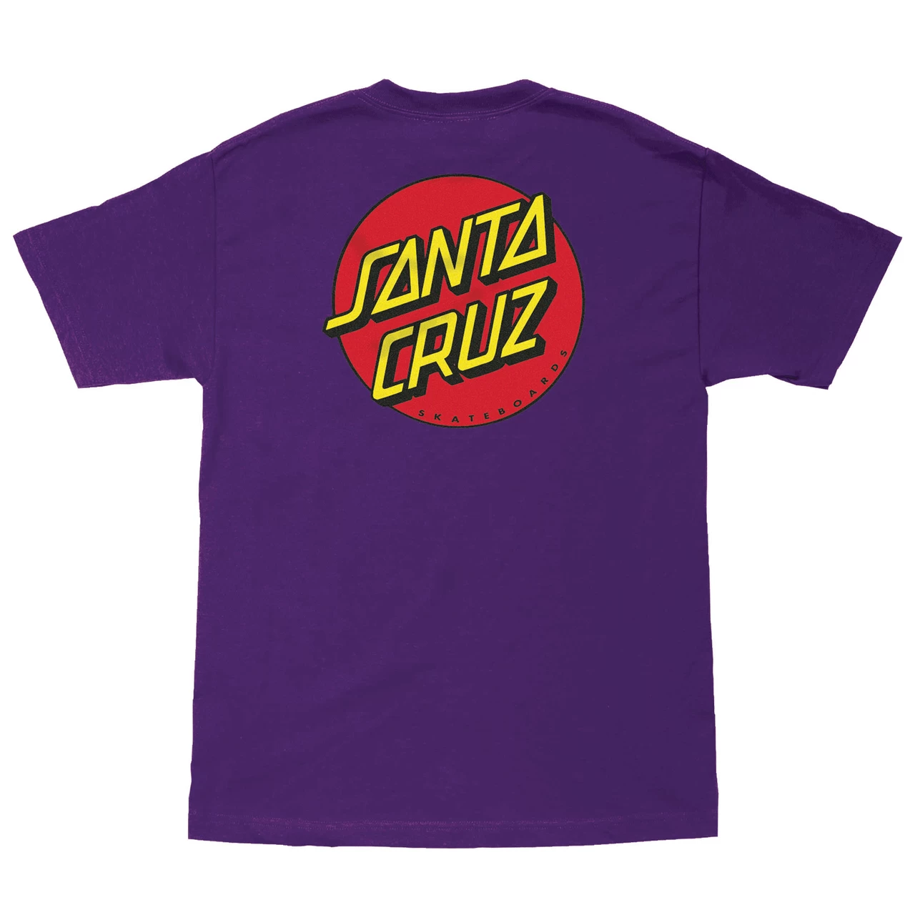 Roll up and stand out in the latest t-shirts and apparel from Santa Cruz Skateboards. The Santa Cruz Classic Dot men’s short sleeve regular fit t-shirt features large front and large back Santa Cruz Classic Dot logos printed in soft hand ink. Santa Cruz has been manufacturing iconic skateboards and apparel since 1973. Innovative skateboards and artwork from the beginning ’til the end.